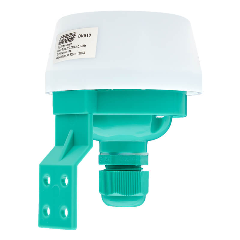 The DNS10 Day/Night sensor automatically turns lighting on or off at dusk and dawn based on the ambient light levels detected by the sensor. It features adjustable lux settings and integrates easily into new or existing installations. Designed specifically for outdoor use, the DNS10 must be installed in an uncovered location to function accurately. Its IP54-rated housing provides protection against limited dust ingress and water splashes from any direction, making it suitable for direct exposure to rain (though not submersion), while the IP68-rated cable gland offers superior protection against dust and prolonged water immersion at the wiring point. Ideal for outdoor lighting, industrial, commercial, residential, and security applications, it enhances energy efficiency and safety by activating lights only when needed. Simple yet effective, the 10A rated current of the DNS10 adds to its convenience and sustainability. Installation must be done by a qualified electrician.