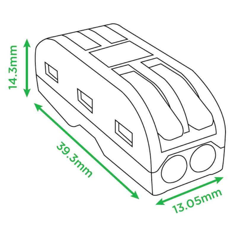 The PCT-222 Interjoining Connector Block offers a quick and secure clamping solution, with the added benefit of an easy release when needed. Designed with a screwless connection, it helps reduce installation time for electricians and contractors. This 2 Pole connector is ICE Standard Approved, rated at 450V, supports up to 32A, and provides 4kV voltage resistance.