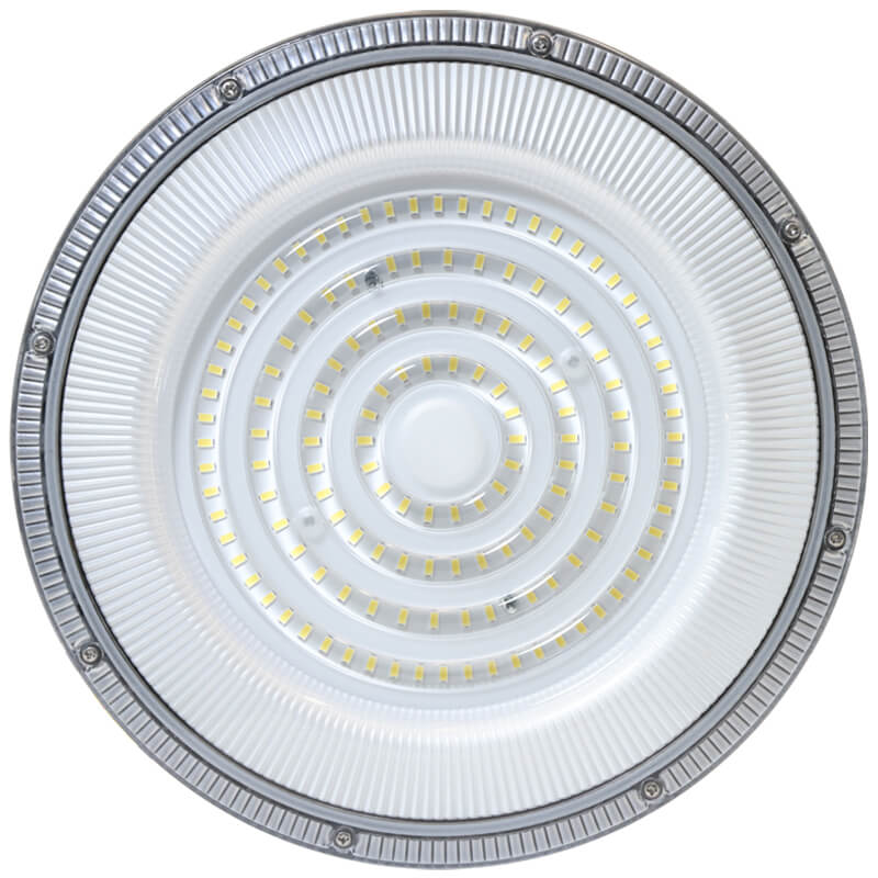 The EHB20NW is an ultra-slim UFO LED High-bay with a modern design, featuring a die-cast aluminium body that ensures effective heat dissipation. This high-performance light provides a bright output of 24000 lumens, powered by energy-efficient SMD2835 LED chips and a reliable DOB (Driver on Board) system. With a colour temperature of 5000K and a 90° beam angle, it offers efficient and even light distribution, making it ideal for industrial and commercial applications. The fixture operates within a voltage range of 180-265V AC and has a luminous efficacy of 120lm/W, ensuring optimal energy performance. It also boasts a power factor of >0.9 and an IP65 rating for dust and water resistance, making it suitable for harsh environments. The EHB20NW is easy to install with a suspension hook and chain included for convenient mounting. This robust lighting solution is built to last offering peace of mind for long-term use.