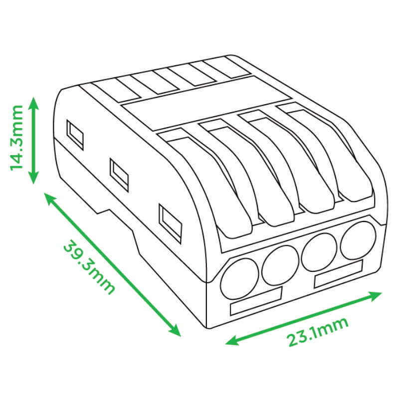 The PCT-224 Interjoining Connector Block offers a quick and secure clamping solution, with the added benefit of an easy release when needed. Designed with a screwless connection, it helps reduce installation time for electricians and contractors. This 4 Pole connector is ICE Standard Approved, rated at 450V, supports up to 32A, and provides 4kV voltage resistance.