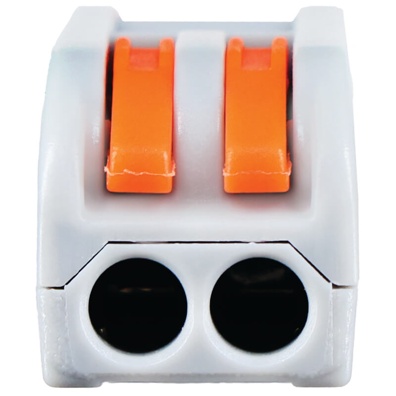 The PCT-222 Interjoining Connector Block offers a quick and secure clamping solution, with the added benefit of an easy release when needed. Designed with a screwless connection, it helps reduce installation time for electricians and contractors. This 2 Pole connector is ICE Standard Approved, rated at 450V, supports up to 32A, and provides 4kV voltage resistance.
