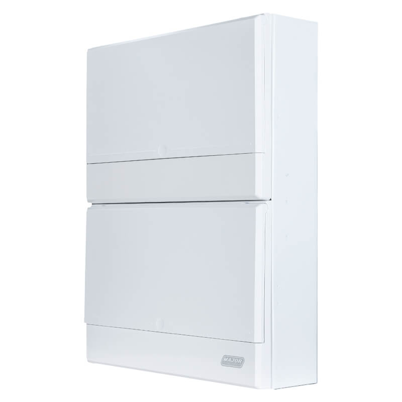 The VBM2228SM is an IP20-rated 22-28 Way Surface Mount distribution board, with a compact 2-row height, it can accommodate up to 28 individual 18mm modules, providing an efficient and reliable electrical distribution solution for your space. Crafted from high-quality, powder-coated iron, the durable metal tray ensures strength and longevity. Conforming to South Africa compliance standards IEC61439 and IEC61000, the VBM2228SM distribution board is equipped with an Earth & Neutral Bar, offering enhanced safety and reliability in electrical installations. The adjustable DIN rail and front cover simplify the installation process, ensuring a level and secure setup. Additionally, included distribution board labels make circuit identification easy, helping to maintain a tidy and organised electrical system. This VBM2228SM distribution board is the ideal choice for those seeking a robust, efficient, and organised electrical solution.
