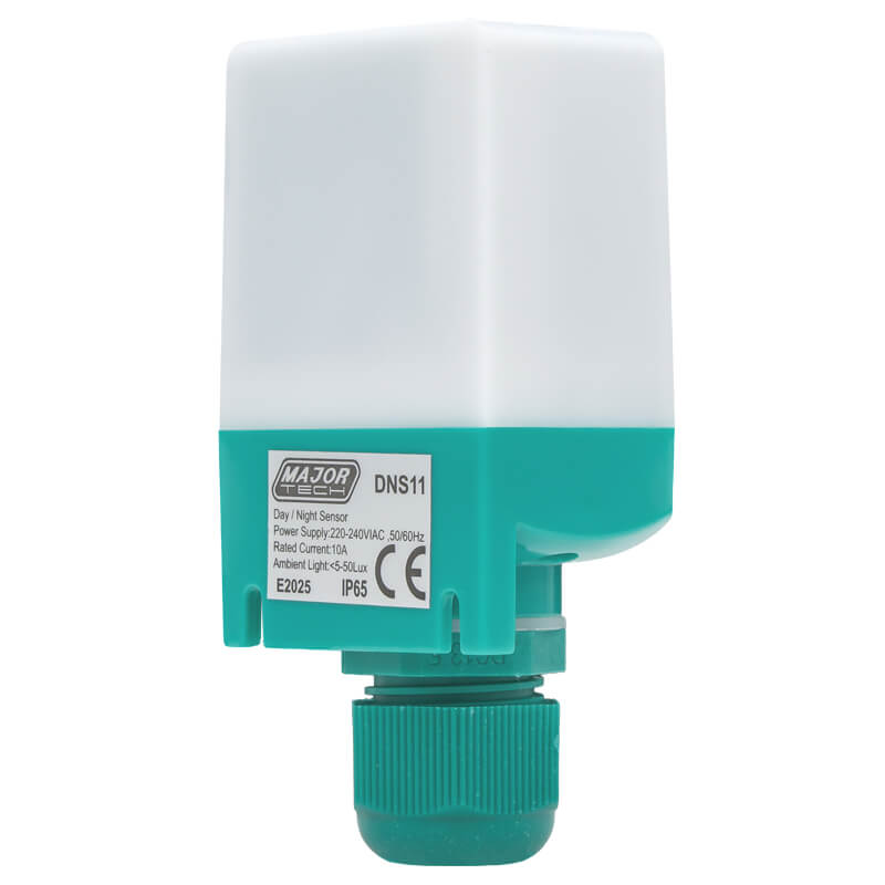 The DNS11 Day-Night sensor automatically turns on or off lighting at dusk and dawn based on set ambient light levels of the sensor. It features adjustable lux settings and integrates easily into new or existing installations. Ideal for outdoor lighting, industrial, commercial, housing applications and security lighting, it enhances energy efficiency and security by activating lights on and off only when needed at night. Simple yet effective, the 10A rated current of the DNS11 enhances convenience and sustainability. Installation must be done by a qualified electrician.