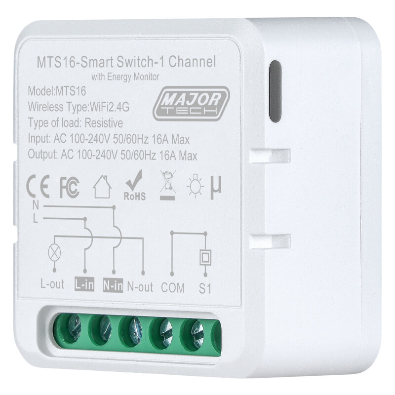 Experience next level Smart Home management with the MTS16 Smart Wi-Fi and Bluetooth Switch Module. This Switch Module is specifically designed for users to be able to add a level of smart control to any standard switch or socket, with Dual Mode Wi-Fi and Bluetooth connectivity, allowing users to utilize the Smart App functionality of “Major Tech Hub” for remote monitoring and control. It adheres to 802.11b: DSSS; 802.11g/n: OFDM for Wi-Fi standards for seamless data communication, with GFSK for Bluetooth V5.1 as a failover should the Wi-Fi connection be interrupted. When installing the Smart Switch Module, ensure that it is done by a suitably qualified professional in accordance with South African regulations and making sure it is placed in an appropriate environment with an ambient temperature range of -25°C to 55°C. The relative humidity should be kept below 75%.