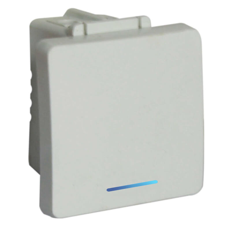 The switch module has been tested and approved to the required standard of IEC / SANS60669-1 and has been issued with an LOA (Letter of Authority) from the NRCS (National Regulator for Compulsory Specifications) allowing for the sale of the product in South Africa. The switch module is equivalent to a double module in size in order to make switching easier and add a little difference to the installation. The switch module can be used for controlling any load up to 16A, and is most commonly used for the control of tactile dimmers (refer to V404U5 for more information) or door bells. A blue neon locator has been incorporated into the switch to make it easy to locate the switch in the dark and add aesthetic flair to any installation. A neutral wire connected to the correct switch terminal is required for the activation of the neon in bell press switches. The internal switch rocker is made from copper and has silver tip contacts to ensure the best possible conductance. The plastic casing is made from a mix of high quality plastics including flame retardant polycarbonate to ensure strength, durability and prevention against fires and nylon to allow for flexibility which ensures the module can easily be inserted or removed from the fixing frames. Once the module is inserted in the fixing frame it can only be removed with a small flat screw driver but due to the flexible properties of nylon the clipping mechanism can easily be pushed in to allow for removal of the module. The switch terminals are clearly numbered with a corresponding wiring diagram on the side of the switch to make installation and connection as simple as possible. The switch terminals use a clamping mechanism as opposed to a screw connection in order to prevent stranded cable from breaking and coming loose. The switch terminals come with 2 holes per terminal to make it easier and safer to insert 2 wires when bridging is required.