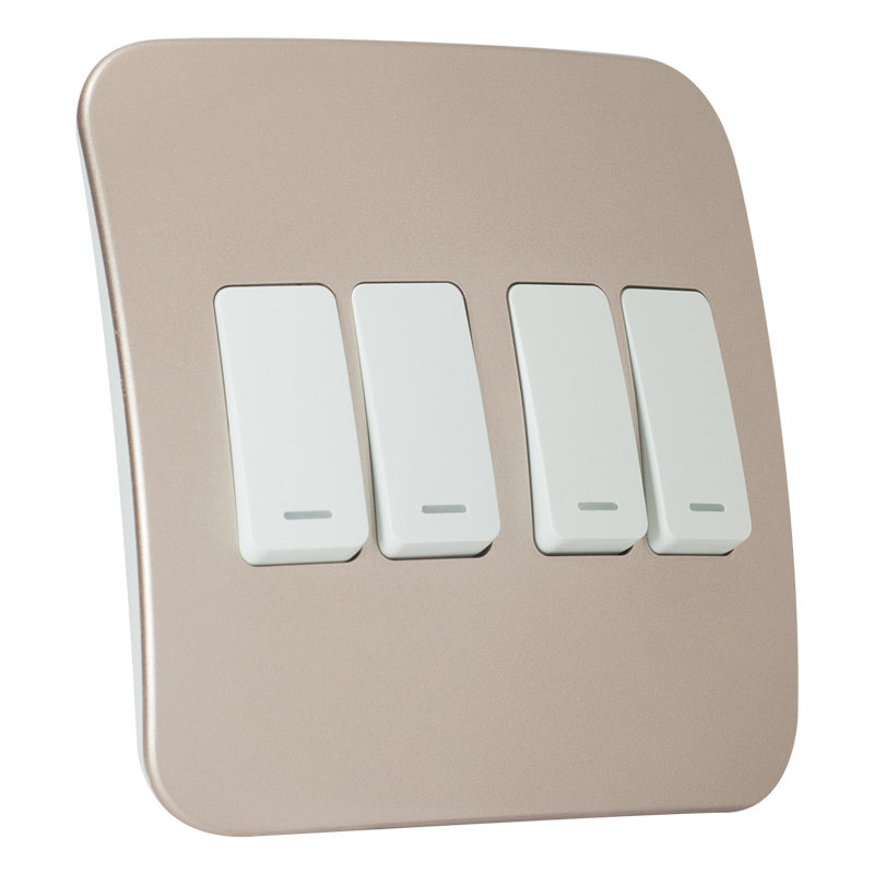 Veti’s Four Lever Light Switch provides an affordable solution to decorate one of the most commonly used applications in ones living and working area. The Veti 1 range has an ultra-modern, rounded design with complete and modular solutions for the more creative spaces in your home. The rounded, angled design ensures you can plug in all your devices without space restrictions. A large 3-pin plug will not prevent you from installing a 2-pin plug right next to it, for example. While the modular and complete units’ trims are offered in black or white, the cover plates are offered in six interchangeable colours that will suit any environment. The colours include: