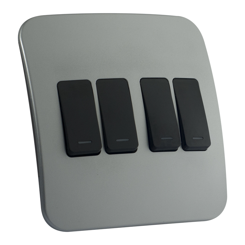 Veti’s Four Lever Light Switch provides an affordable solution to decorate one of the most commonly used applications in ones living and working area. The Veti 1 range has an ultra-modern, rounded design with complete and modular solutions for the more creative spaces in your home. The rounded, angled design ensures you can plug in all your devices without space restrictions. A large 3-pin plug will not prevent you from installing a 2-pin plug right next to it, for example. While the modular and complete units’ trims are offered in black or white, the cover plates are offered in six interchangeable colours that will suit any environment. The colours include: