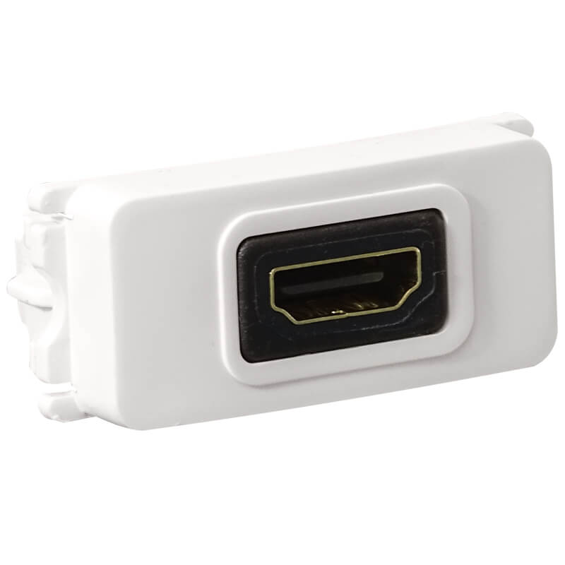 The V306 HDMI Socket Outlet has female to female connection. The V306 has a flexible cable behind the module to facilitate installation and is a single module connection to reduce space in an occupied wall box.