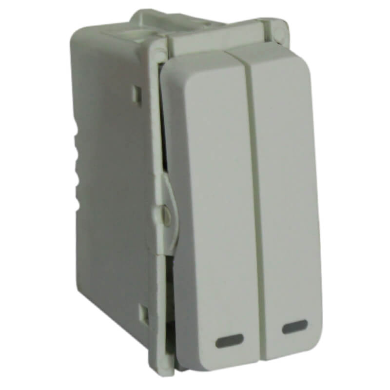 The switch module has been tested and approved to the required standard of IEC / SANS60669-1 and has been issued with an LOA (Letter of Authority) from the NRCS (National Regulator for Compulsory Specifications) allowing for the sale of the product in South Africa. The switch module can be used for switching any lighting load up to 16A, including fluorescents and LEDs. The same switch can be used for modular socket combinations where applicable. The switch is ideal when space is a problem and more than 3 switches are required in a 100mm x 50mm wall box or more than 6 switches are required in a 100mm x 100mm wall box. The internal switch rockers are made from copper and have silver tip contacts to ensure the best possible conductance. The plastic casing is made from a mix of high quality plastics including flame retardant polycarbonate to ensure strength, durability and prevention against fires and nylon to allow for flexibility which ensures the module can easily be inserted or removed from the fixing frames. Once the module is inserted in the fixing frame it can only be removed with a small flat screw driver but due to the flexible properties of nylon the clipping mechanism can easily be pushed in to allow for removal of the module. The switch terminals are clearly numbered with a corresponding wiring diagram on the side of the switch to make installation and connection as simple as possible. The switch terminals use a clamping mechanism as opposed to a screw connection in order to prevent stranded cable from breaking and coming loose. The switch terminals come with 2 holes per terminal to make it easier and safer to insert 2 wires when bridging is required. Applicable with: Fixing Frames Cover Plates