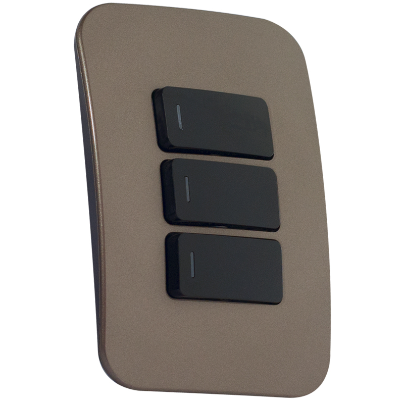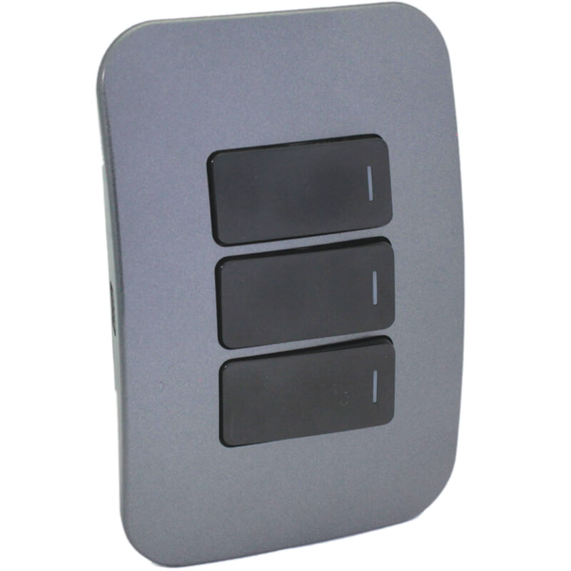 Veti’s Three Lever Light Switch provides an affordable solution to decorate one of the most commonly used applications in ones living and working area. The Veti 1 range has an ultra-modern, rounded design with complete and modular solutions for the more creative spaces in your home. The rounded, angled design ensures you can plug in all your devices without space restrictions. A large 3-pin plug will not prevent you from installing a 2-pin plug right next to it, for example. While the modular and complete units’ trims are offered in black or white, the cover plates are offered in six interchangeable colours that will suit any environment. The colours include: