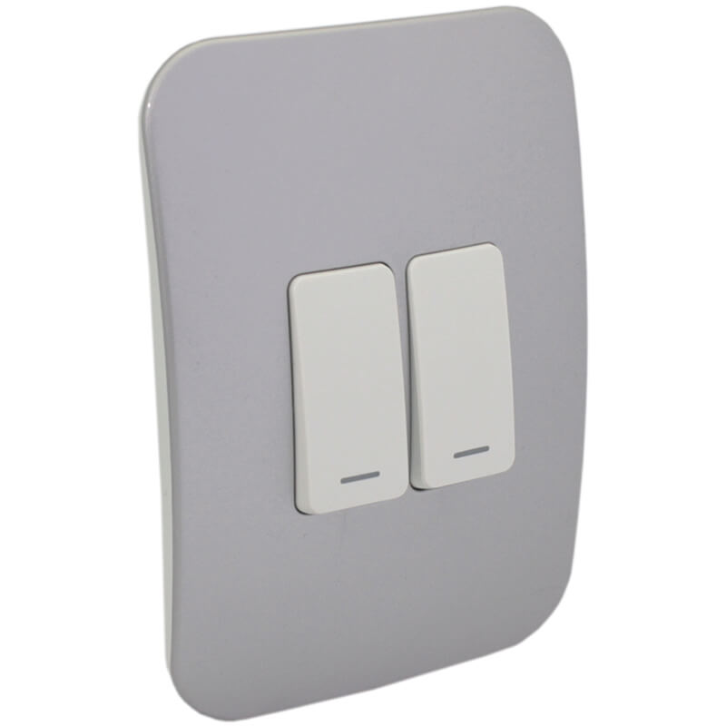 Veti’s Two Lever Light Switch provides an affordable solution to decorate one of the most commonly used applications in ones living and working area. The Veti 1 range has an ultra-modern, rounded design with complete and modular solutions for the more creative spaces in your home. The rounded, angled design ensures you can plug in all your devices without space restrictions. A large 3-pin plug will not prevent you from installing a 2-pin plug right next to it, for example. While the modular and complete units’ trims are offered in black or white, the cover plates are offered in six interchangeable colours that will suit any environment. The colours include: