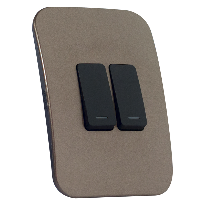 Veti’s Two Lever Light Switch provides an affordable solution to decorate one of the most commonly used applications in ones living and working area. The Veti 1 range has an ultra-modern, rounded design with complete and modular solutions for the more creative spaces in your home. The rounded, angled design ensures you can plug in all your devices without space restrictions. A large 3-pin plug will not prevent you from installing a 2-pin plug right next to it, for example. While the modular and complete units’ trims are offered in black or white, the cover plates are offered in six interchangeable colours that will suit any environment. The colours include: