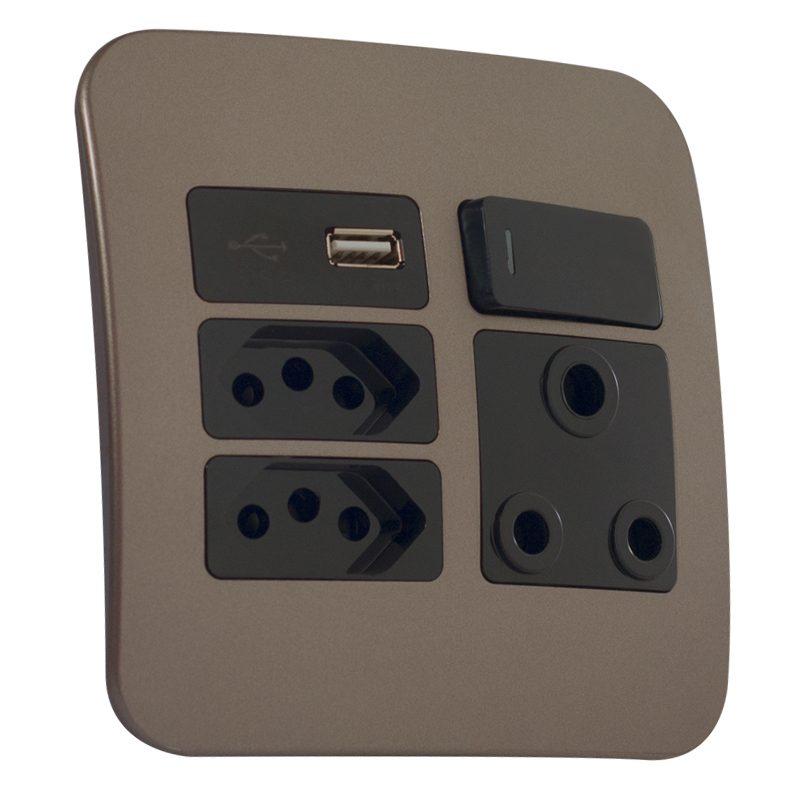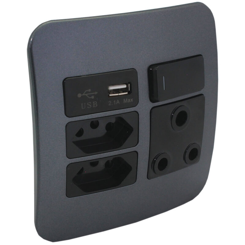 Veti’s USB Wall Socket provides an affordable solution to decorate one of the most commonly used applications in ones living and working area. The Veti 1 range has an ultra-modern, rounded design with complete and modular solutions for the more creative spaces in your home. The rounded, angled design ensures you can plug in all your devices without space restrictions. A large 3-pin plug will not prevent you from installing a 2-pin plug right next to it, for example. While the modular and complete units’ trims are offered in black or white, the cover plates are offered in six interchangeable colours that will suit any environment. The colours include: