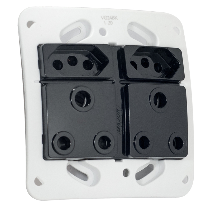 The 100mm x 100mm (4x4) monoblock socket outlet has been tested and approved to the required standard of IEC60884-1 in conjunction with SANS164-0, SANS164-1 & SANS164-2. The socket outlet has also been issued with an LOA (Letter of Authority) from the NRCS (National Regulator for Compulsory Specifications) allowing for the sale of the product in South Africa. The socket outlet is rated at 16A, 250V and is thus able to handle any load drawing a maximum of up to 16A. The contacts are made from high quality copper to ensure the safest connection by improving conductivity and therefore reducing heat which is caused due to a higher resistance from other accepted materials such as brass. The socket is made from a mix of high quality plastics including flame retardant polycarbonate for an attractive finish and durable finish and the back is made from flame retardant polypropylene to ensure strength and slightly more flexibility to assist if wall boxes are not in straight. This specific socket is designed with no switches in order to give the customer more sockets in a 100mm x 100mm wall box. According to SABS 0142, only a DC circuit requires a switch because any AC installation is protected by a miniature circuit breaker at the distribution board which acts as a switch if required. For many installation applications there is no need for a switch and so the VG24 is the perfect solution to offer as many socket outlets as possible in a standard 100mm x 100mm wall box.