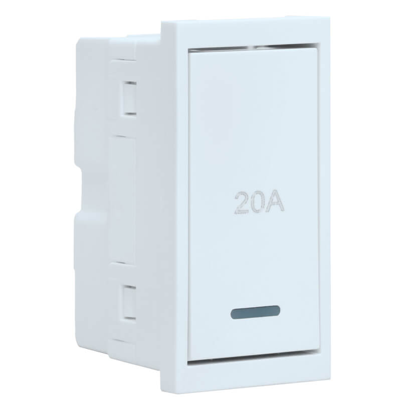 The switch module has been tested and approved to the required standard of IEC/SANS60669-1 and has been issued with an LOA (Letter of Authority) from the NRCS (National Regulator for Compulsory Specifications) allowing for the sale of the product in South Africa. The switch is clearly marked with the current rating and indicates the on/off positions. A common application for the switch is for underfloor heating and cooling systems where the load does not exceed 20A. The internal switch rockers are made from copper and have silver tip contacts to ensure the best possible conductance. The plastic casing is made from a mix of high quality plastics including flame retardant polycarbonate to ensure strength, durability and prevention against fires and nylon to allow for flexibility which ensures the module can easily be inserted or removed from the fixing frames. Once the module is inserted in the fixing frame it can only be removed with a small flat screw driver but due to the flexible properties of nylon the clipping mechanism can easily be pushed in to allow for removal of the module. The switch terminals are clearly numbered with a corresponding wiring diagram on the side of the switch to make installation and connection as simple as possible. The switch terminals use a clamping mechanism as opposed to a screw connection in order to prevent stranded cable from breaking and coming loose. The switches come with a single large terminal for ease of connecting thicker or multiple cables.