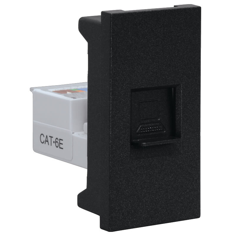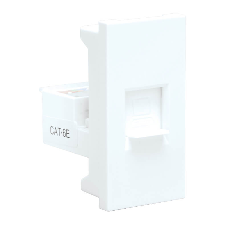 The data socket outlet is intended for any standard cat. 6 RJ45 type connections and can also be used for any category ratings less than cat 6 such as cat 4, cat 5 and cat 5e. The data module is also ideal for all VOIP (voice over IP) telephone connections. The housing is made from a high quality polycarbonate plastic and incorporates a pictogram on the front face to easily identify the application.