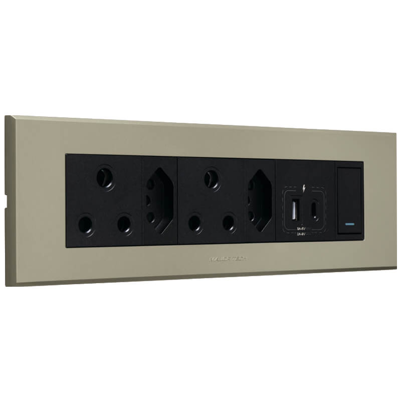 All of Veti combination sockets have been tested and approved to the required standards. The letter of authorities can be downloaded from the website for the individual components for checking. The omni cluster combinations are available in 5 different colour options in order to give the customer a wide variety of colours to suit any installation. Each combination has been carefully selected based on customer preferences but due to the wide array of modules there are many options which are not covered and can be designed by the user according to their specific preferences. All switches and sockets are IEC / SANS approved.