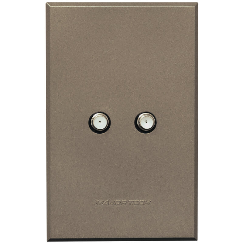 Veti 3’s Dual Satellite Sockets fits into standard 50x100mm wall boxes. The ultra slim design of the VETI 3 range has a modern and stylish look, sporting large switch covers for easy switching. The switches have a toggle action with the unique feature of being flat in the Off position, and slightly ajar when in the On position. The VETI 3 cover plates and switch covers have an array of four interchangeable matt colour finishes to suit any interior. As standard options, Major Tech supplies five colour combinations to simplify the selection process. These combinations are a bronze cover with titanium switch, a titanium cover with graphite switch, a graphite cover with titanium switch, a graphite cover with graphite switch and a white cover with white switch. Due to the safe customisation process unique to the VETI 3 range, customers can decide on any colour combination to ensure a stylish finish to match their décor. In addition, a combination of two-way and Bell Press switches are available as a standard selection. Each switch includes a luminous fluorescent strip which glows when charged by sunlight or the lighting in the room. These strips do not consume current, however, and the glow will therefore only be visible in areas where they are exposed to sufficient light that is able to charge the fluorescent strip. The same winning combinations The VETI 3 series is a new monoblock design with a range of socket outlets available in both 100 x 100 mm and 100 x 50 mm versions. Moreover, VETI’s popular patented socket with the two V-Slim 16A sockets (SANS164-2), the new SA 3-pin standard, and two standard 16A round pin sockets (SANS164-1) have also been made available in VETI 3, offering more versatile functionality. Major Tech has also catered for communications sockets (satellite, data and telephone sockets) in dual socket combination at the same price as a single socket. There is also a switched dual 2.1A USB socket outlet which complies with all relevant local and international standards, combined with V-Slim sockets (SANS 164-2) and SA round pin sockets (SANS164-1). Electricians will also appreciate the simplified bridging options in certain multi-switch products. Instead of having to manually bridge switches, VETI 3 includes an internal bridge which automatically bridges the switches after the electrician has attached a single electrical cable to the input terminal. Not only does this enhance the safety of the installation, but it also makes it simpler and faster for electricians to get the job done.
