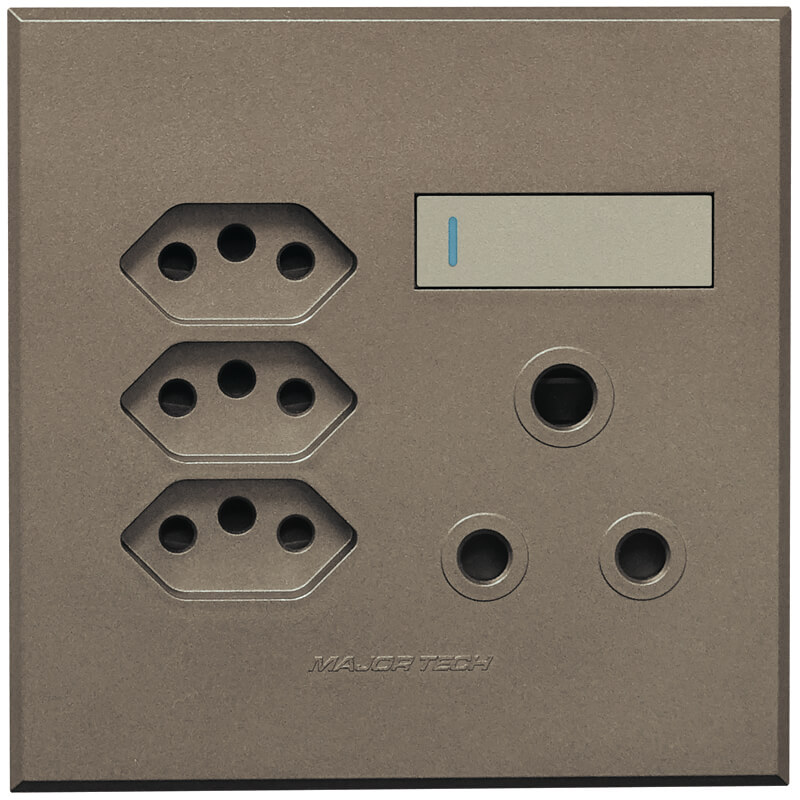 Veti 3’s Single RSA, Triple V-Slim Sockets fits all 100mm x 100mm wall or mounting boxes. The ultra slim design of the VETI 3 range has a modern and stylish look, sporting large switch covers for easy switching. The switches have a toggle action with the unique feature of being flat in the Off position, and slightly ajar when in the On position. The VETI 3 cover plates and switch covers have an array of four interchangeable matt colour finishes to suit any interior. As standard options, Major Tech supplies five colour combinations to simplify the selection process. These combinations are a bronze cover with titanium switch, a titanium cover with graphite switch, a graphite cover with titanium switch, a graphite cover with graphite switch and a white cover with white switch. Due to the safe customisation process unique to the VETI 3 range, customers can decide on any colour combination to ensure a stylish finish to match their décor. In addition, a combination of two-way and Bell Press switches are available as a standard selection. Each switch includes a luminous fluorescent strip which glows when charged by sunlight or the lighting in the room. These strips do not consume current, however, and the glow will therefore only be visible in areas where they are exposed to sufficient light that is able to charge the fluorescent strip. The same winning combinations The VETI 3 series is a new monoblock design with a range of socket outlets available in both 100 x 100mm and 100 x 50mm versions. Moreover, VETI’s popular patented socket with the two V-Slim 16A sockets (SANS164-2), the new SA 3-pin standard, and two standard 16A round pin sockets (SANS164-1) have also been made available in VETI 3, offering more versatile functionality. Major Tech has also catered for communications sockets (satellite, data and telephone sockets) in dual socket combination at the same price as a single socket. There is also a switched dual 2.1A USB socket outlet which complies with all relevant local and international standards, combined with V-Slim sockets (SANS 164-2) and SA round pin sockets (SANS164-1). Electricians will also appreciate the simplified bridging options in certain multi-switch products. Instead of having to manually bridge switches, VETI 3 includes an internal bridge which automatically bridges the switches after the electrician has attached a single electrical cable to the input terminal. Not only does this enhance the safety of the installation, but it also makes it simpler and faster for electricians to get the job done.