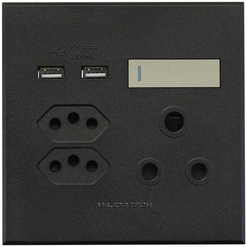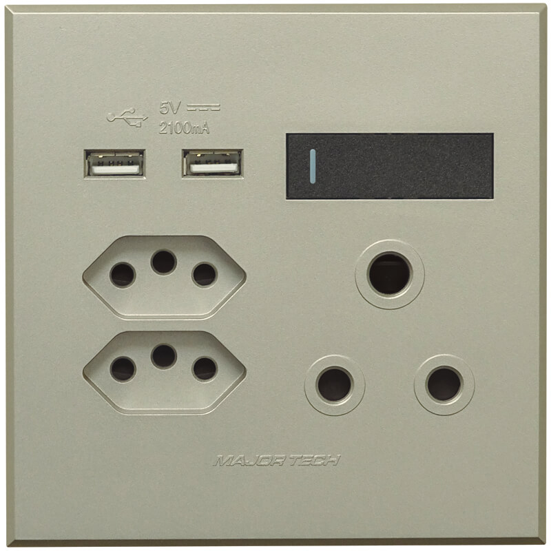Veti 3’s Double USB, Double V-Slim, Single RSA Sockets fits all 100mm x 100mm wall or mounting boxes. The ultra slim design of the VETI 3 range has a modern and stylish look, sporting large switch covers for easy switching. The switches have a toggle action with the unique feature of being flat in the Off position, and slightly ajar when in the On position. The VETI 3 cover plates and switch covers have an array of four interchangeable matt colour finishes to suit any interior. As standard options, Major Tech supplies five colour combinations to simplify the selection process. These combinations are a bronze cover with titanium switch, a titanium cover with graphite switch, a graphite cover with titanium switch, a graphite cover with graphite switch and a white cover with white switch. Due to the safe customisation process unique to the VETI 3 range, customers can decide on any colour combination to ensure a stylish finish to match their décor. In addition, a combination of two-way and Bell Press switches are available as a standard selection. Each switch includes a luminous fluorescent strip which glows when charged by sunlight or the lighting in the room. These strips do not consume current, however, and the glow will therefore only be visible in areas where they are exposed to sufficient light that is able to charge the fluorescent strip. The same winning combinations The VETI 3 series is a new monoblock design with a range of socket outlets available in both 100 x 100mm and 100 x 50mm versions. Moreover, VETI’s popular patented socket with the two V-Slim 16A sockets (SANS164-2), the new SA 3-pin standard, and two standard 16A round pin sockets (SANS164-1) have also been made available in VETI 3, offering more versatile functionality. Major Tech has also catered for communications sockets (satellite, data and telephone sockets) in dual socket combination at the same price as a single socket. There is also a switched dual 2.1A USB socket outlet which complies with all relevant local and international standards, combined with V-Slim sockets (SANS 164-2) and SA round pin sockets (SANS164-1). Electricians will also appreciate the simplified bridging options in certain multi-switch products. Instead of having to manually bridge switches, VETI 3 includes an internal bridge which automatically bridges the switches after the electrician has attached a single electrical cable to the input terminal. Not only does this enhance the safety of the installation, but it also makes it simpler and faster for electricians to get the job done.